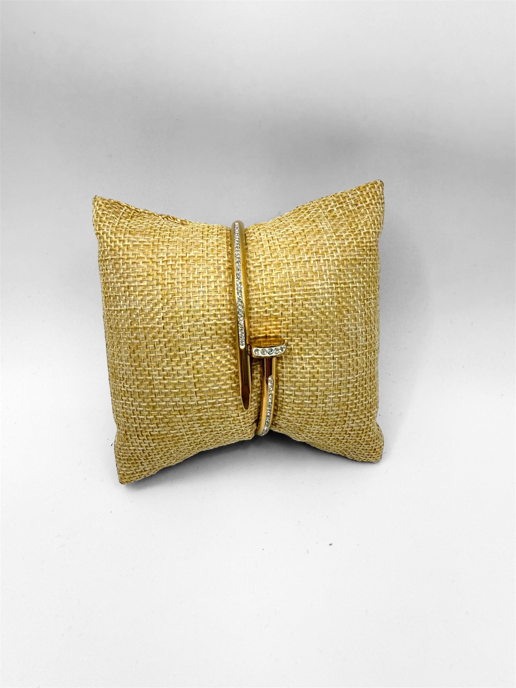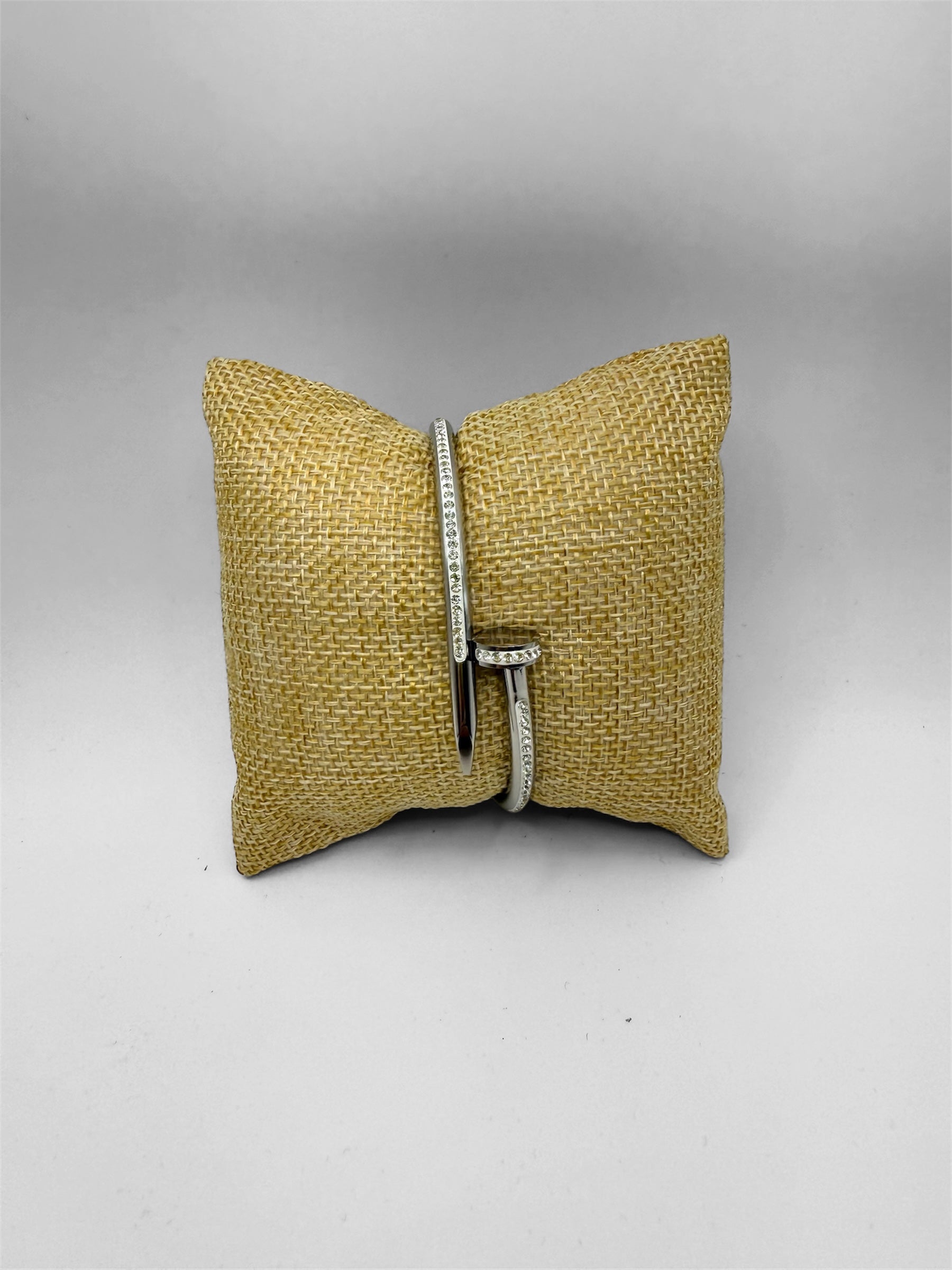 Descubre nuestros brazaletes tipo clavo con brillos, disponibles en dorado y plateado.